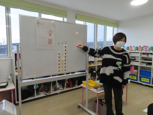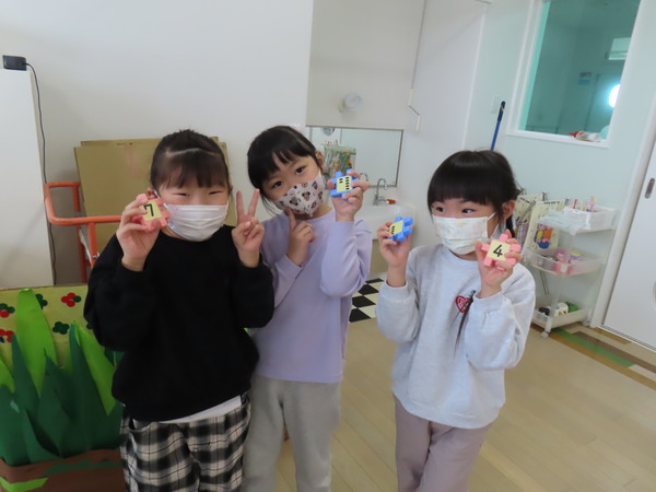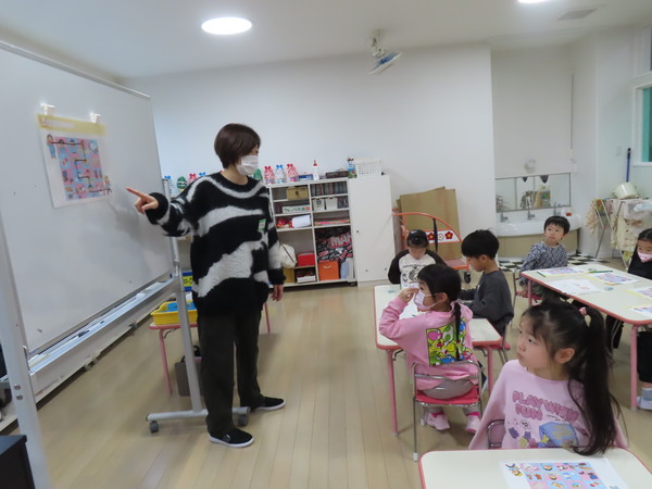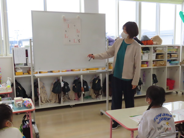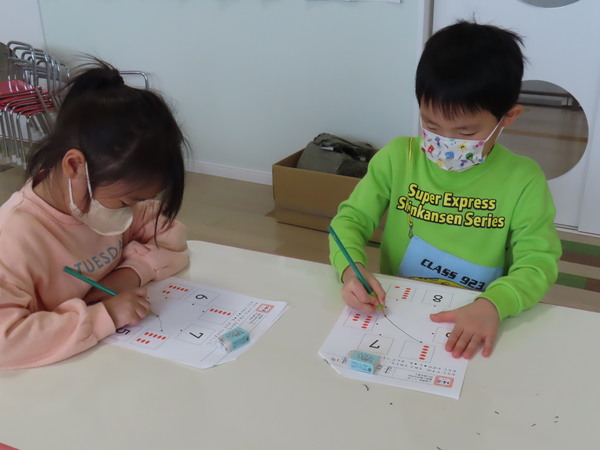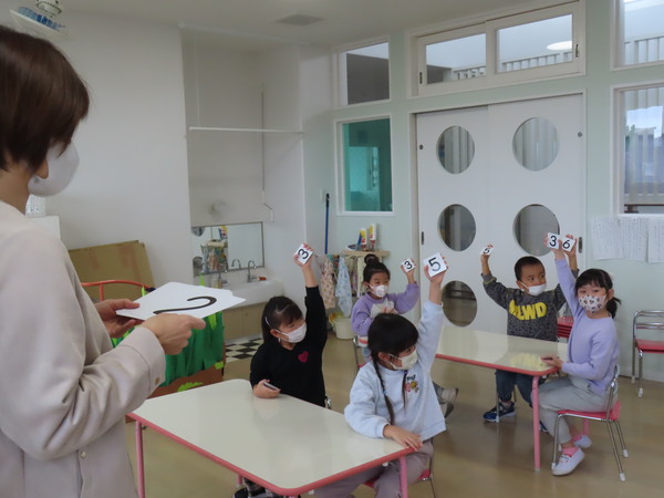| まなびタイムにやま組(5歳児)さんが参加しました。数と数字を学んだり、文字を入れ替え単語にしたりと、楽しみながら取り組んでいましたよ。 | ||