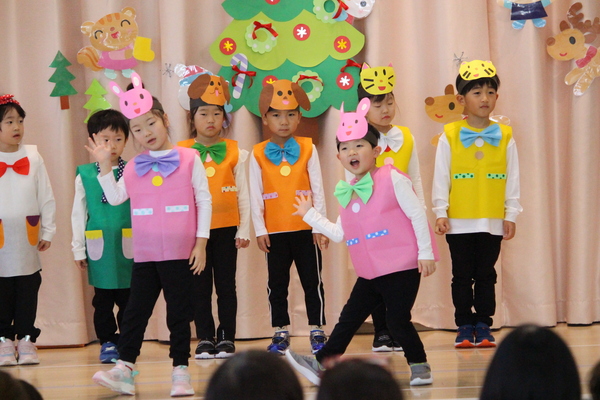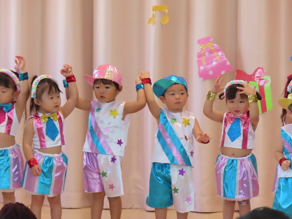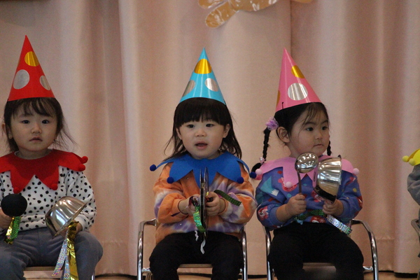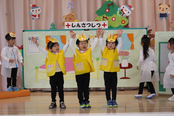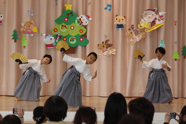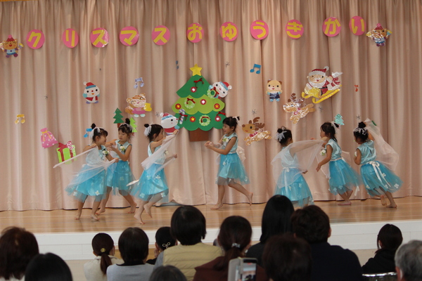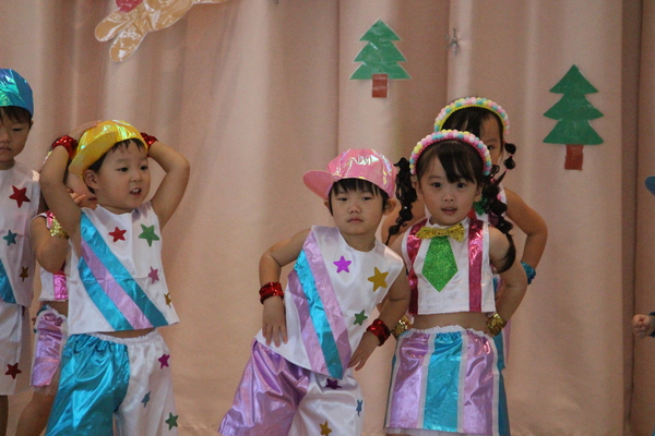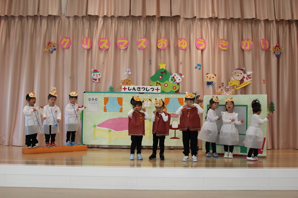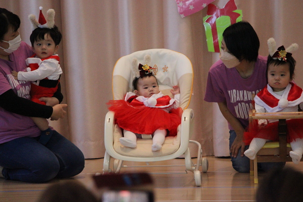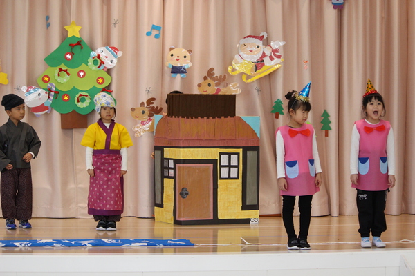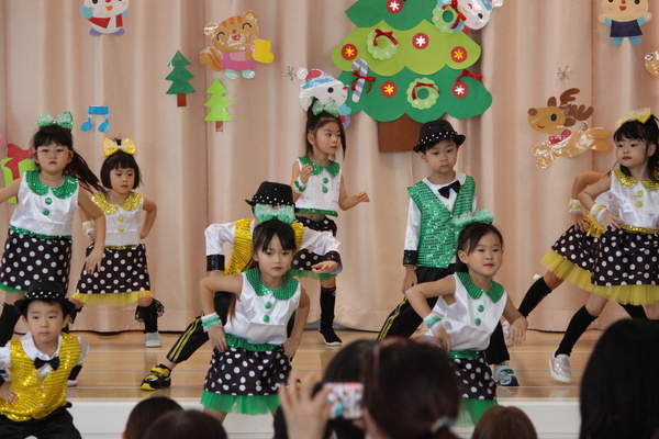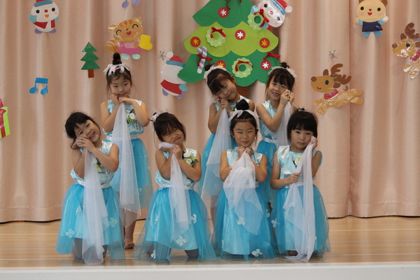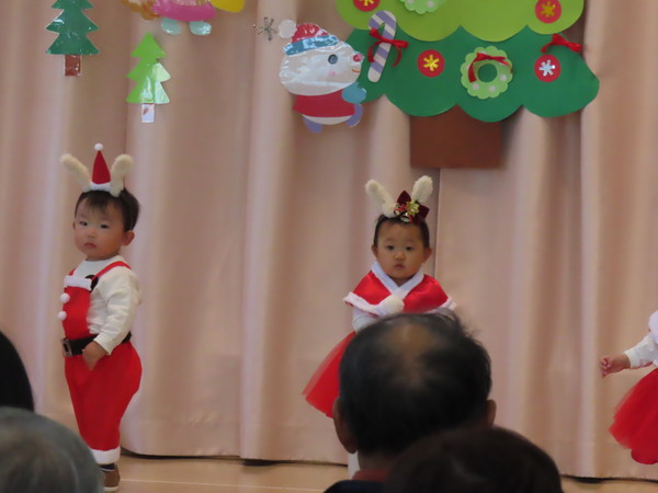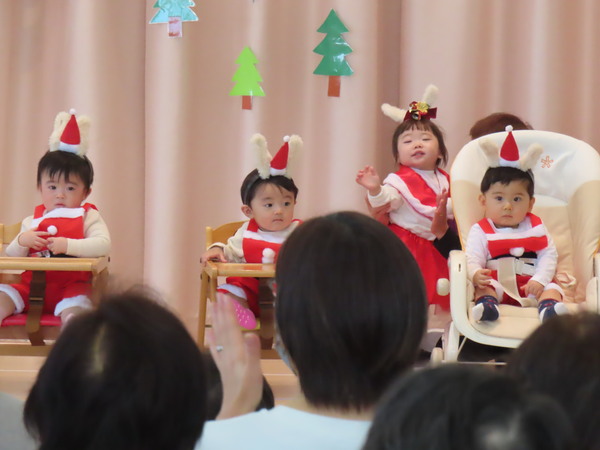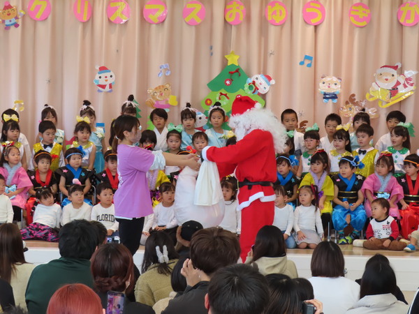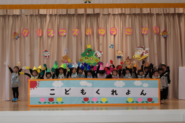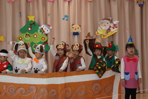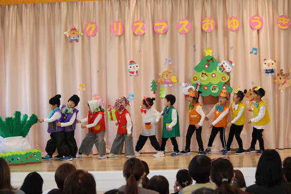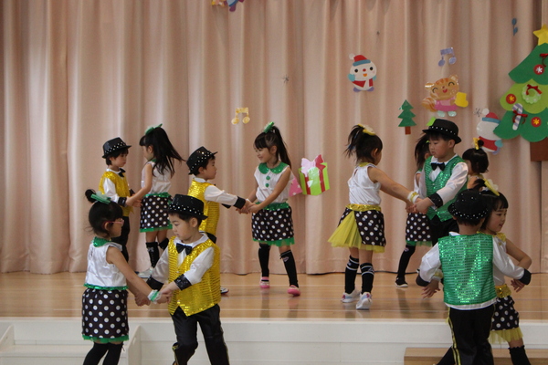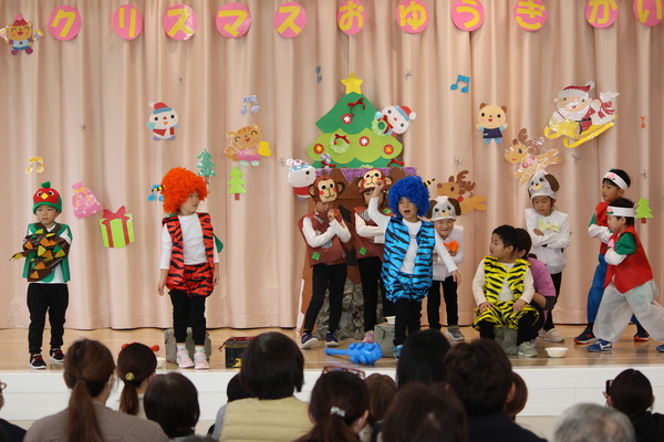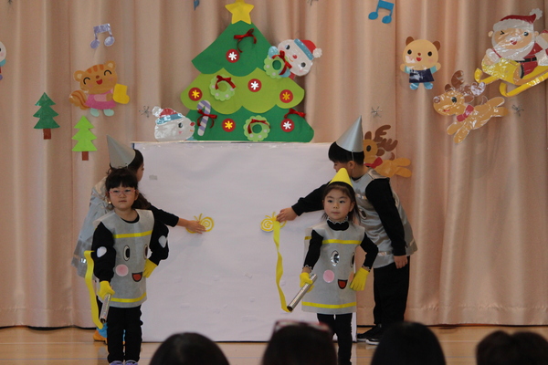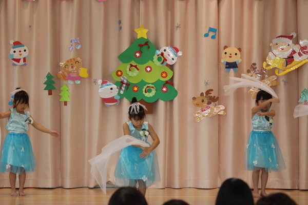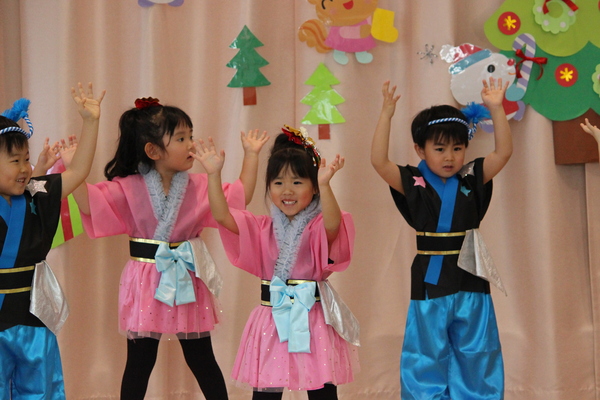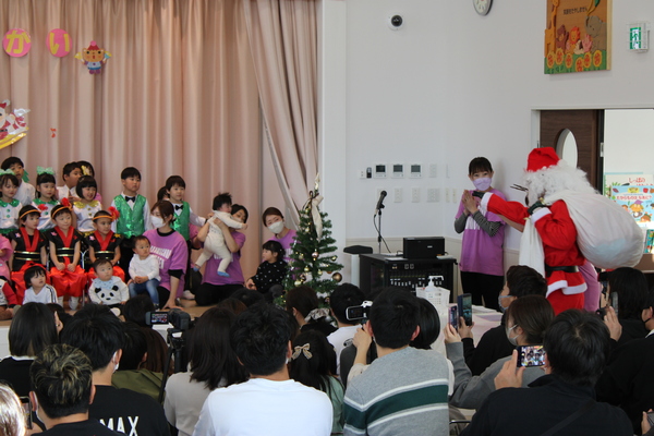 | 11月29日(土)、第21回クリスマスおゆうぎ会を行いました。こどもたちは少し緊張した姿を見せる子もいましたが、プログラムが進んでいくうちに、笑顔で自信を持って演じる姿が見られました♪こどもたちの成長した姿を、保護者の方にもたくさん見せることができました♡ 楽しみにしていたサンタさんも登場!大喜びのこどもたちでしたよ☆ 保護者のみなさま、ご協力ありがとうございました。 |