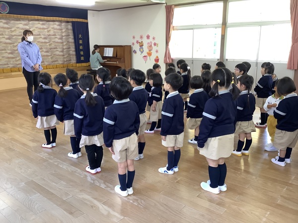 新年度がスタートしました〜♪ 令和8年度の始業式満開の桜とともに新年度がスタートしました〜!みんな ひとつお兄さんお姉さんになりましたね年長組のお友達今日からみんなは幼稚園のリーダーですどうぞ よろしくね♪ 園歌を歌いましょう♪ 進級おめでとう! 1学期の始まりですよ 帰りのお集まりは‥‥ じゃんけん‥‥ぽん! さようならの前に‥‥ 2026/04/09