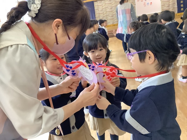 ようこそ幼稚園へ♡新入園児歓迎会 ようこそ大園幼稚園へ♡これから一緒にたくさんたくさん遊びましょうね♪年中年長のお兄さんお姉さんから手づくりちょうちょさんをプレゼント!わー かわいい〜 ありがとう♡みんなにこにこいい笑顔です♪ 新しいお友達をご紹介 新しいキャラクター達も わーい いっしょだね♡ ありがとう〜♡ ♪🎵⭐︎✴︎ ♪🎵˚✧₊⁎ 2026/04/25