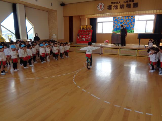1月29日(金)第47回音楽発表会予行練習が行われました。各学年は見たり、聞いたりしていますが、一度に見るのは初めてです。オープニングに年長組の鼓隊があり、迫力満点でした。一部は各学年のお歌です。童謡、唱歌、クラシックなどなんでもあり、楽しかった。合間に年中組の鍵盤ハーモニカ奏と年長組のハーモニカ吹奏がありました。第2部では最年少、年少、年中、年長の合奏です。とてもまとまっていて、素晴らしかった。来週の土曜日には保護者各家庭一人参観です。おそらく子ども達の演奏と成長に感動していただけると思います。 年長組の自由遊びに一輪車、フラフープ、縄跳びなどあります。一輪車とフラフープ2本で100回まわしの認定証は全員持っていますが、縄跳びはあと二人です。縄跳び100回はなかなかしんどいですが、本園の子ども達は必ず合格します。毎日見ていると感動します。これからも楽しく遊びましょう。 |