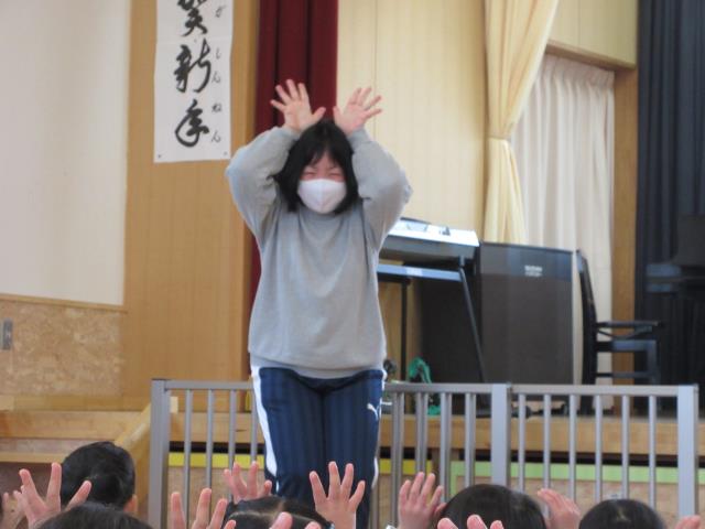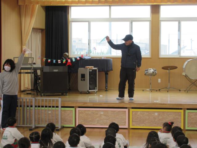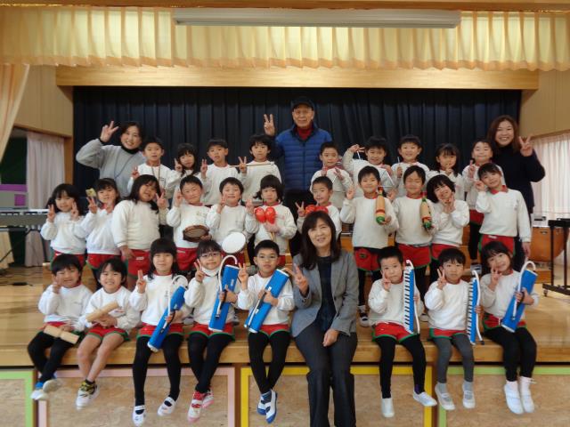 1月15日(金)1月の保育参観が行われました。コロナウイルスのために各幼児一人に一人の保護者に来ていただきました。9時40分お入りの音楽が鳴り、園児たちは体育ローテーションの用意を始めました。保護者は一人ずつ検温、消毒、手洗いなど基本的なことは全て行い、動の活動「体育ローテーション」、「全体体操」、 「フォークダンス」、「朝礼」など見ていただきました。続いて静の活動「日課活動」を見ていただきました。生き生きしたみんな日常の活動を見ていただき、保護者は大変喜んでいただきました。その後、ひよこ、年少、年中組は保護者と一緒に制作をしました。年長組は体育室で男女別に一輪車リレーです。ものすごいスピードに感動していただきました。男子の部は2勝で、さくら組の優勝、女子の部は2勝で、うめ組の優勝でした。最後に御礼の挨拶の後に3人の保護者からコメントをいただきました。全て、「子ども達の豊かな成長に感動した」と言っていただきました。皆さん、本当にありがとうございました。 |