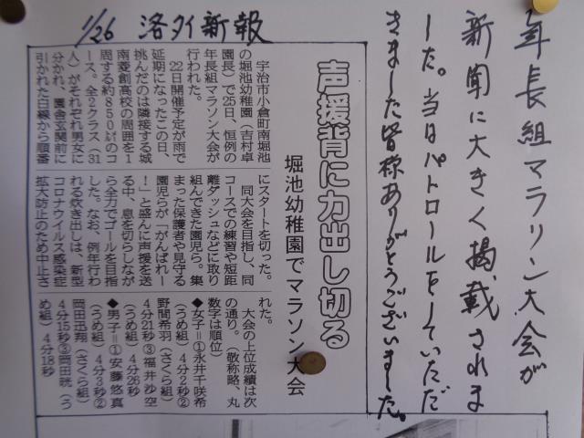 1月25日行われました年長マラソン大会が新聞に大きく掲載されましたのでお知らせ致します。 |