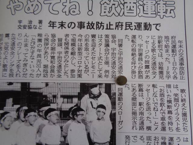 12月2日本日の新聞に交通事故防止府民運動が掲載されていましたので、お知らせいたします。特に年末、年始は事故や事件がありますので、特に注意をお願い致します。 |