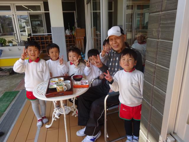 えんちょうせんせいへ いつもようちえんにきたら おはようっていってくれてうれしかったです。 おたんじょうびかいでまじっくしてくれてありがとう。いちりんしゃでひとりのりをできたら、ほめてくれてありがとうございます。 ようちえんまいにちたのしかったから、 おわかれするのはさみしいです。あとすこしいっぱいあそびたいです。せんせいみんなありがとうございました。 年長組 Kさんより 幼稚園の先生へ おげん気ですか。わたしはげん気です。わたしはなわとび二百かいとべました。いまはようちえんの先生のしごとは、たいへんですが、わたしもしょうらい、ようちえんの先生になりたいとおもいます。ぜったいになりたいとおもいます。もういちどあえたら、いっぱいべんきょうをおしえてください。 小学校1年生 Iさんより 一生懸命お勉強して、又、運動も頑張り立派な幼稚園の先生になって下さい。実習でお待ちしています。 園長先生より