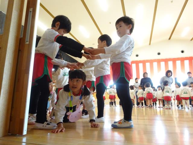 2月28日(金)年長春場所相撲大会が開かれました。元気いっぱいの子供たちははだか、はだしで勝敗は別にして力いっぱい頑張ってくれました。自由参観でしたが、沢山の保護者が参観に来ていただきました。コロナウイルスが心配でしたので、保護者は全員マスクをつけていただきました。最初はもちろん受け身の練習です。後ろ受け身、前受け身など準備体操を行ってから、男女個人戦、予選、決勝、団体戦、勝ち抜き戦すべて行いました。最後まで怪我もなく、ものすごい迫力でとても楽しかった。表彰式の後、3人の保護者に感想を聞きますと、大相撲を見ているよりも迫力があり、楽しかった。子供たちの素晴らしい成長が見られたなど、とても喜んでいただきました。全員、黙想の後、保護者にお礼のご挨拶をして終了しました。皆様、ありがとうございました。 |