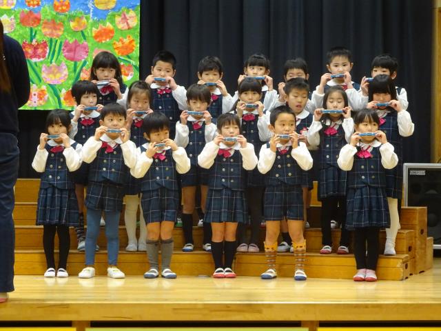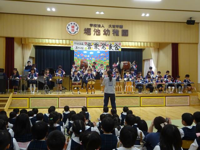 2月8日(土)令和元年度(第46回)堀池幼稚園音楽発表会が行われました。9:40分開場、10:00開演ですが、7:30分から並ばれていました。10時にオープンセレモニーとして保護者会から先生方にプレゼントがありました。会場から大きな拍手をいただきました。その後年長組の鼓隊があり、「365日の紙飛行機」と「メヌエット」でしたが、あまりのうまさで会場は大きな拍手でした。その後、2歳から年長までの合唱、年中組の鍵盤ハーモニカ、年長組のハーモニカ吹奏どちらも大変素晴らしかった。その後合奏です。最年少組からの合奏から年長組の和太鼓演奏まで皆様感動されていました。最後は全員で「さよなら」を歌いました。大きな声で歌いましたが、あまりの感激に涙がこぼれてきました。最後まで応援していただいた保護者の皆様ありがとうございました。 |