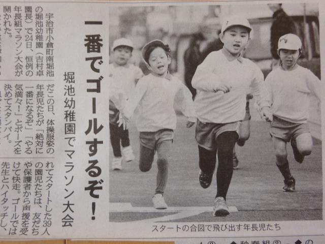 前日行われた年長マラソン大会が新聞に大きく掲載されました。力一杯力走した子ども達の写真をご覧ください。 |