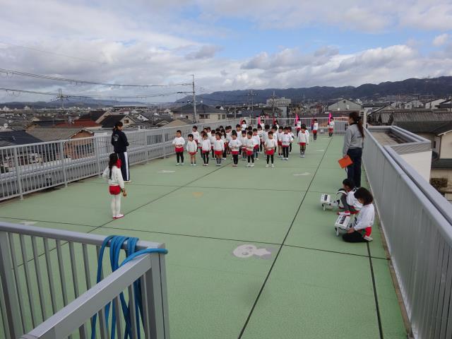 1月21日午後年長組の和太鼓の練習を見た後、年中組を見ると楽しいリトミックをしていました。「園長先生も入って下さい」と言われたので、一緒に「なべなべそこぬけ」をして年中組と遊びました。2人で手をつなぎ、ひっくり返り、全員で遊ぶと元に戻り、とても楽しかった。戦後、何もない時代よく「なべなべそこぬけ」などして遊びました。今日は年中組さんからパワーをもらいました。ありがとうございました。 |