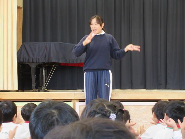 先週の木曜日から風邪で、急に声が出なくなり、高い小さな声で喋っていました。金曜日、毎日ラジオ体操の後で、一輪車、縄跳び、フラフープなど合格者には表彰状を渡しています。その声が聞き取りにくいほどでした。子供たちから「ケンちゃんみたい」と言われてからかわれていました。月曜日になり、多くの子供さんから「園長先生、大丈夫?」と優しい声で心配してくれました。数人の保護者まで「園長先生大丈夫ですか?」と心配していただきました。もう大丈夫です。本当にありがとうございます。毎日、子供たちから素晴らしいエネルギーをいただいています。明日は、宇治市からパッカー車が来てくれます。「パックン」と思い切り楽しみたいと思っています。 |