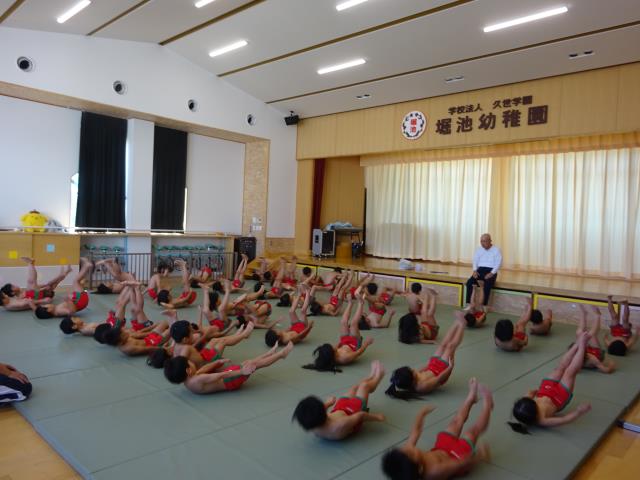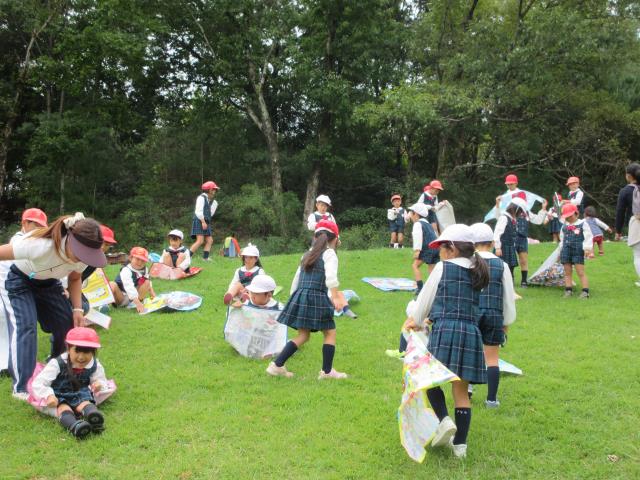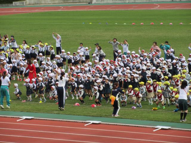 堀池幼稚園第46回大運動会が10月14日(月)に行われた。12日でしたが大型台風で当日になりました。予報では晴でしたが、雨が降ったり、やんだりの天候でした。しかしながら皆様のお力で素晴らしい運動会になりました。子供たちも日ごろの練習の成果を120パーセント発揮してくれました。帰り、校門でお礼を言っているとあるお母さんが”感動した、素晴らしかった”とおっしゃっていただきました。朝、早くからお手伝いいただいた役員の皆様、44年間立派な運動場を貸していただいた西小倉小学校様、その他たくさんの皆様のおかげをもちまして、無事に終えることができました。特に、天候不順にかかわりませず、最後まで応援していただきました保護者の皆様に厚く感謝を申し上げます。 |