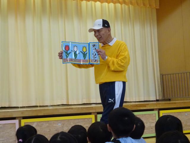 11月6日朝、玄関でいつもの通り子供たちを迎えていると、あるお母さんが、満面笑みを浮かべながら「園長先生、先日はありがとうございました。オカリナショー感動致しました。私、中島みゆきの大ファンで「糸」が大好きなんです」と言っていただきました。こちらこそ聞いていただき、本当にありがとうございました。いつも伴奏していただいている山下先生のおかげです。又、文部省唱歌、叙情歌、童謡などレパートリーを広げて子供たちと遊んでいきます。それが何よりの喜びです。ありがとうございました。 |