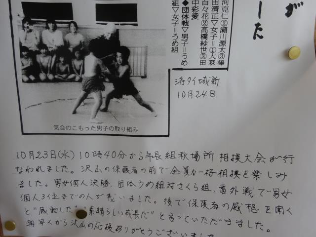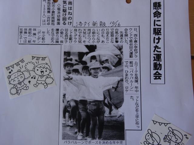 10月14日行われた第46回大運動会が16日の新聞に掲載されていました。天候は不順でしたが、子ども達は力一杯頑張りました。保護者会役員他皆様のご協力で、保護者の皆様から「感動した」とお褒め頂き、恐縮しています。 |