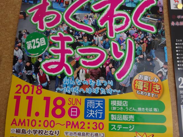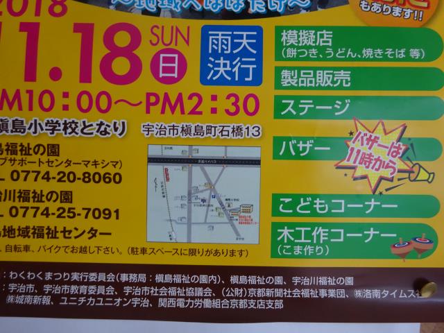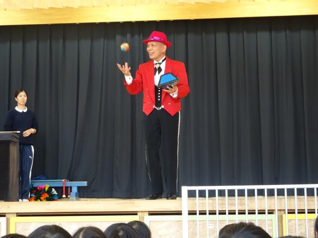 11月18日(日)槇島福祉の園で第25回わくわくまつりが行われました。絶好の秋晴れに恵まれ、朝早くから、ものすごいお客様で、1,200名来られ大盛況でした。私もご招待を受けてチャーリー吉村のマジックショーをさせていただきました。槇島小学校の大きなグランドの駐車場も超満員でした。堀池幼稚園の卒園生や在園児や保護者や知人に沢山お会いさせていただきました。マジックの後片付けをして帰りにお土産を買いに行きましたが、もう終了でパンとサツマイモとコーヒーが残っていたので買わしていただきました。皆様、ご来場いただき、又、福祉にご協力いただき本当に有難うございました。 |