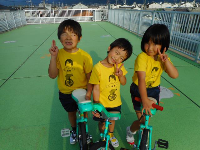 11月7日うめ組さんは本日全員一輪車の認定証を取得されました。本園では一輪車100メートル乗れれば認定証を渡しています。テストに合格すれば昼のラジオ体操のあとで全員の前で、パフォーマンスをします。その後、表彰状を受け取ります。全員拍手喝采です。本人も満面の笑顔です。これからもアイドリング、片足アイドリング、片足走行など頑張って下さい。 |