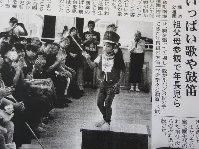 敬老保育参観が9月22日に行われます。通園バスは朝はありますが、お帰りは祖父母と一緒に帰ります。ウェルカムおじいちゃん、おばあちゃんと銘打って、お迎えします。子どもたち(可愛いお孫さん)の豊かな成長をご覧ください。体育ローテーション、日課活動の後、体育室でチャーリー吉村のマジックショーがあり、続いて音楽発表があります。年長組の鼓隊もご覧ください。素晴らしい演奏に感動していただけると思います。西小倉小学校のご好意でいつも駐車場をお借り致しております。当日もご使用下さい。しかし、安全、安心運転で事故のないようにお願い申し上げます。若いおじいちゃん、おばあちゃん、これからも益々お元気で頑張って下さい。 |