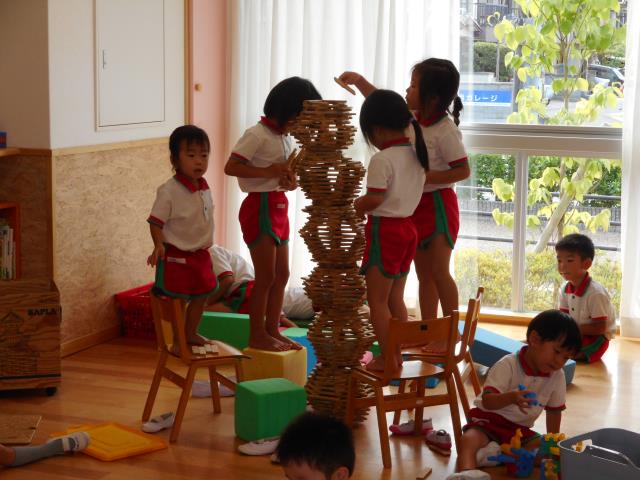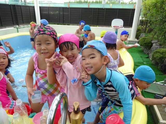 夏休みの預かり保育は7月22日から8月31日までしています。お盆の1週間はお休みになります。ご多忙のお母さんに大変喜んでいただいています。10日(金)で前半のホームスクールは終了です。毎日30名前後のお友達が楽しく遊んでいます。後半は20日(月)から始まります。1週間は夏季保育も行います。全員元気に登園してください。 |