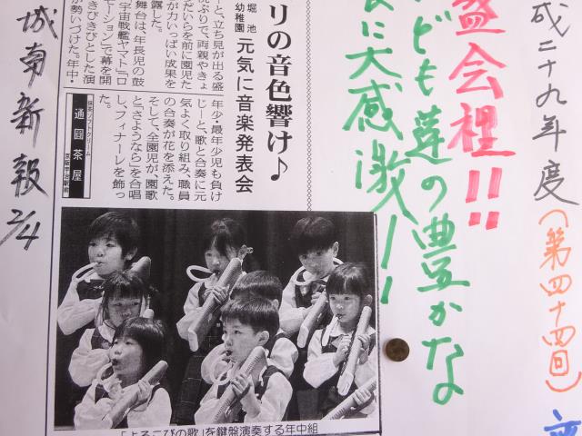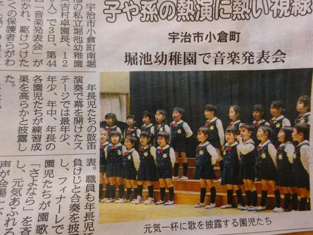 1月26日第44回堀池幼稚園音楽発表会予行練習が行われました。このところインフルエンザが流行し、各クラス学級閉鎖にはなりませんが、休む園児も多く、練習は難しかったですが、さすがに堀池幼稚園の子ども達です。お歌も合奏も素晴らしい音楽を聞かせてくれました。15年以上ご指導いただいている音楽講師高谷先生のお蔭と感謝しています。来週の土曜日が本番で、沢山の保護者の前で、堂々と素晴らしい演奏してくれると思います。来週から全員元気に参加してくれるのを祈っています。 |